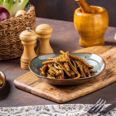 שעועית ירוקה שלמה, מוקפצת עם שום, שומשום ותבלינים. תוספת…