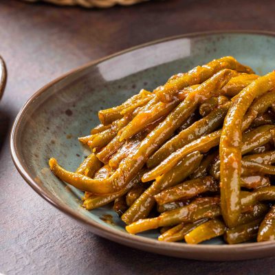 שעועית ירוקה שלמה ברוטב עגבניות מתקתק. נהדרת על מצע…