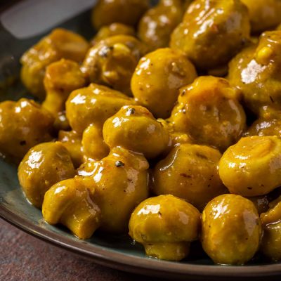 פטריות שמפניון מבושלות ברוטב מזרחי. מצויינות ליד צלי בקר…