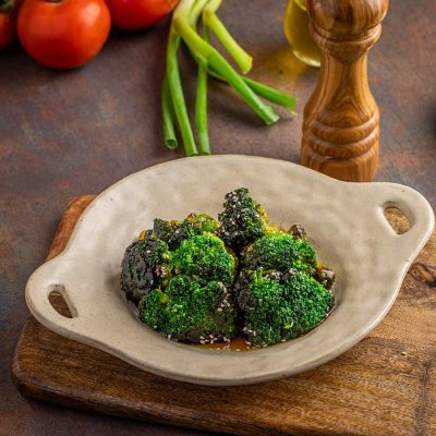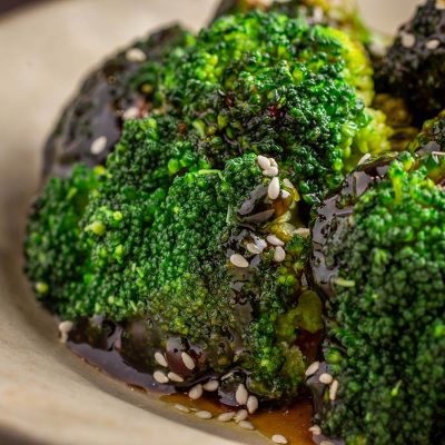 ברוקולי אפוי בתנור, מזוגג ברוטב טריאקי ושומשום מוקפץ. תוספת…