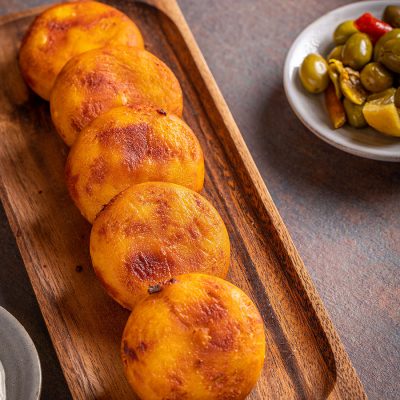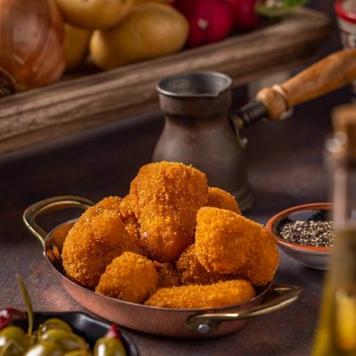 קוקט פירה מטוגן בציפוי פירורי לחם. מצוין כמנת פתיחה…