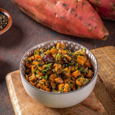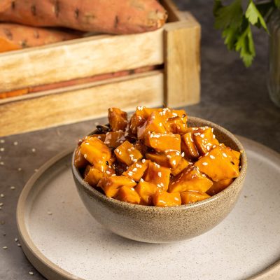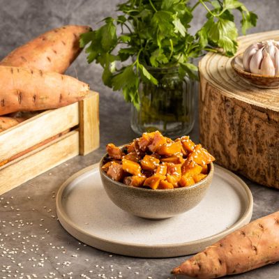 בטטה רכה, מוקפצת ברוטב צ'ילי. סלט עם טעם מדויק…