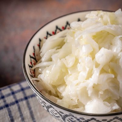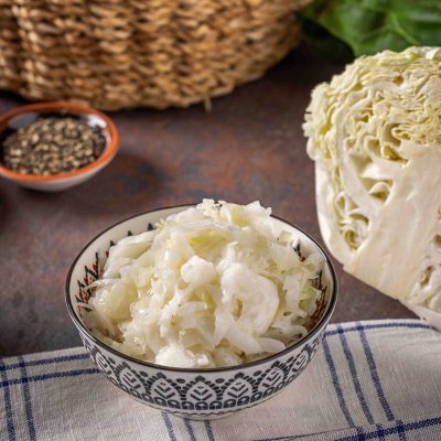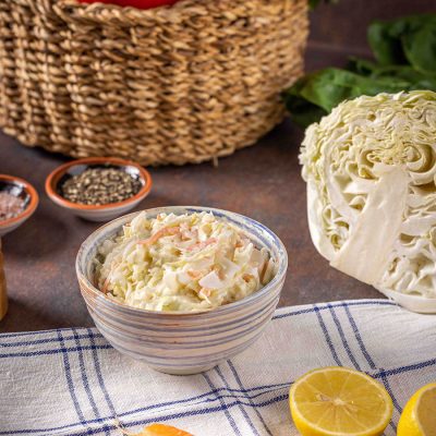 כרוב לבן, טרי, חתוך דק בתחמיץ לימון. אחד הסלטים…
