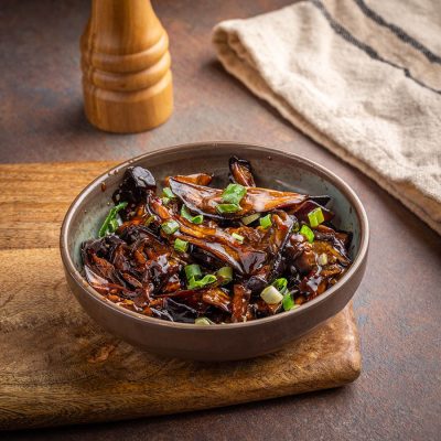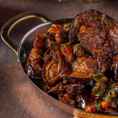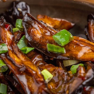 סלט חציל בליווי רוטב טריאקי וצ'ילי בסגנון אסייתי, חרפרף…