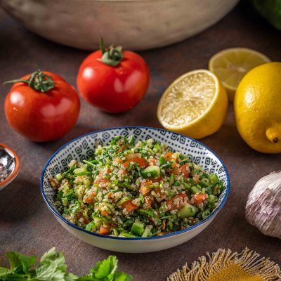 סלט טאבולה בגרסת קינואה עם שלל סוגי ירק, מלפפונים,…