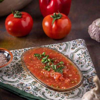 רסק מעגבניות טריות עם שום ופטרוזיליה. טרי וחרפרף. בדיוק…