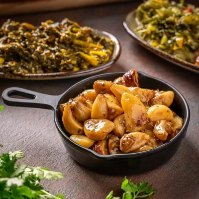 שום שלם קלוף בבישול ארוך עם שמן זית. נהדר…