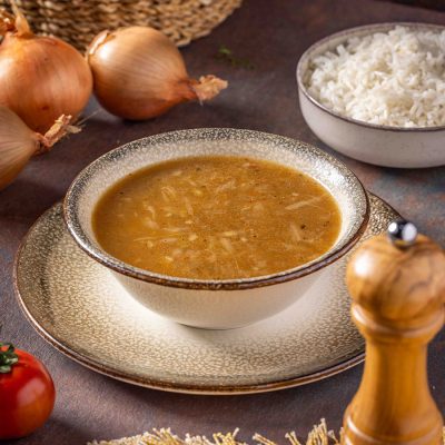אורז פרסי רך מבושל עם עדשים ירוקות, עמוס בצל…