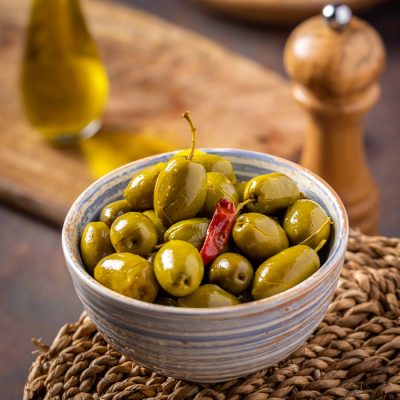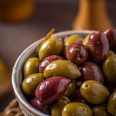 זיתים ירוקים כבושים מתובלים בשמן זית, שום ושמיר *רכישה…