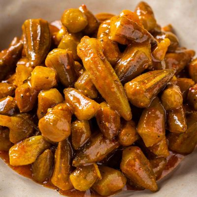 במיה באלדי. מוכרת גם כבמיה כפתורים, מבושלת ברוטב עגבניות…
