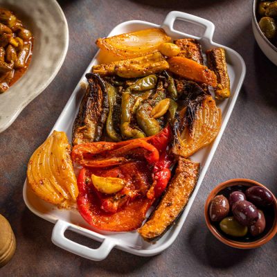 ירקות קלויים: חציל, בצל, שום, פלפלים, גזר, קישוא ובטטה.…