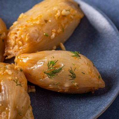 עלי בצל מאודים, ממולאים באורז מתובל ושמיר. תוספת טעימה…