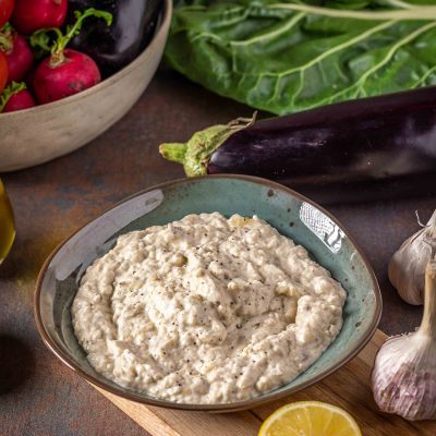 חציל קלוי על גריל פחמים בליווי טחינה. כל כך…