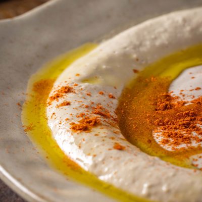 סלט חומוס עם טחינה וגרגירי חומוס רכים, בתיבול חריף.…
