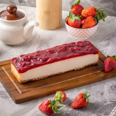 עוגת "גבינה" טבעונית חלומית, רכה עם רוטב תות מתקתק.