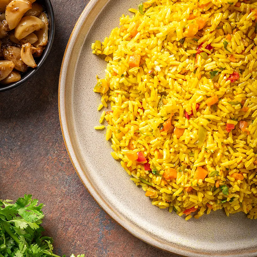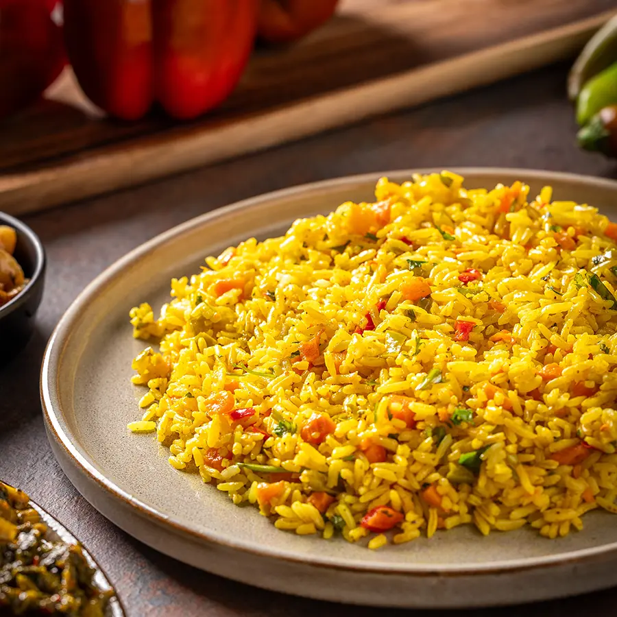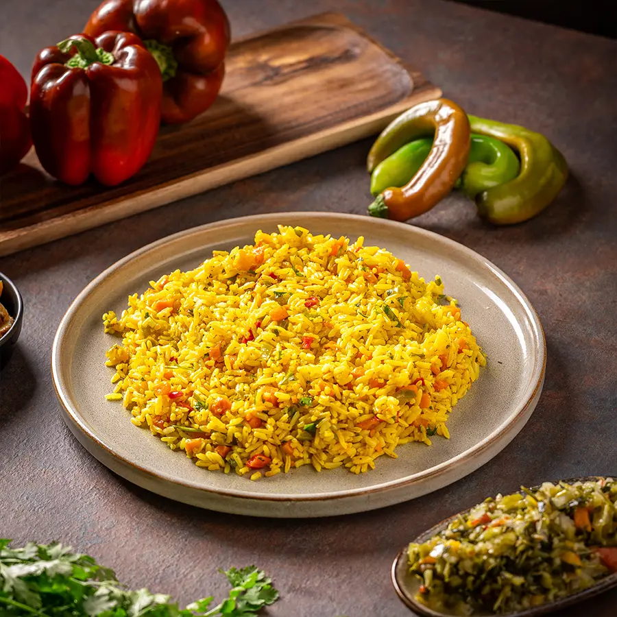 תבשיל אורז עם שלל ירקות ותבלינים.