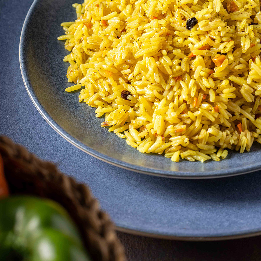 אורז בתבלין פרסי עם קינמון וצימוקים. צהוב, מתקתק ונהדר.