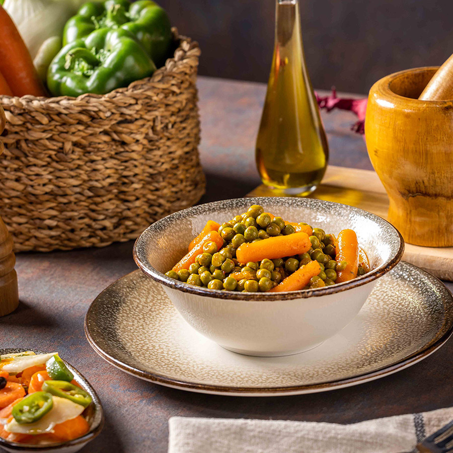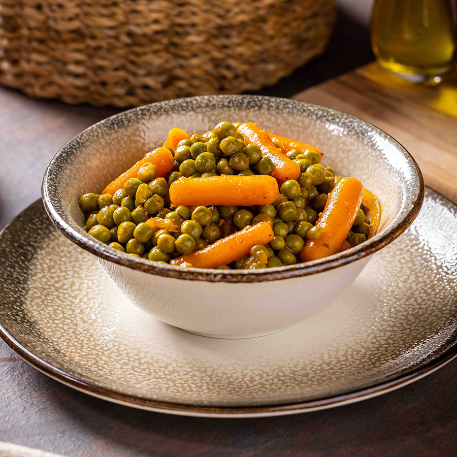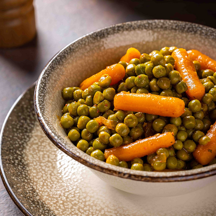 תוספת קלאסית של אפונה וגזר ברוטב.