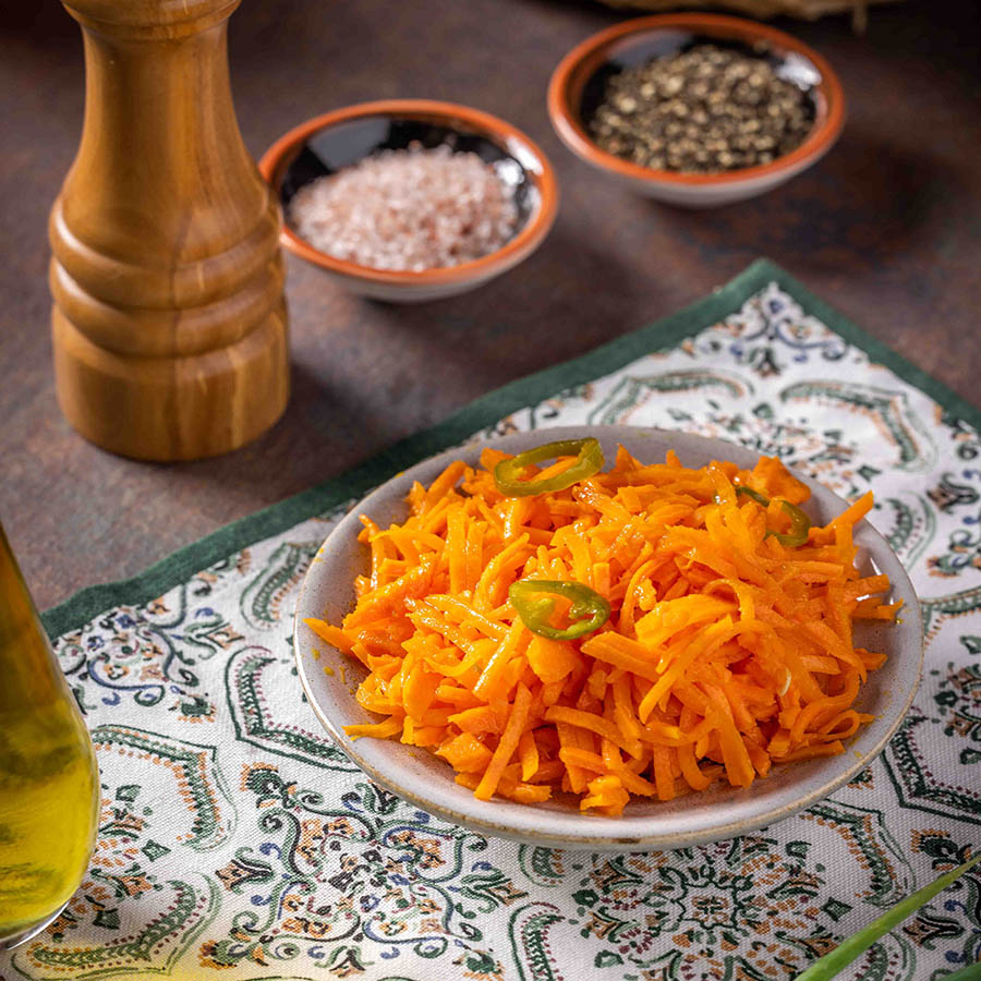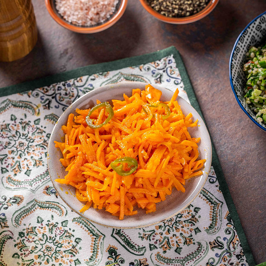 גזר מגורד עם גמבה, לימון ופלפל חריף.