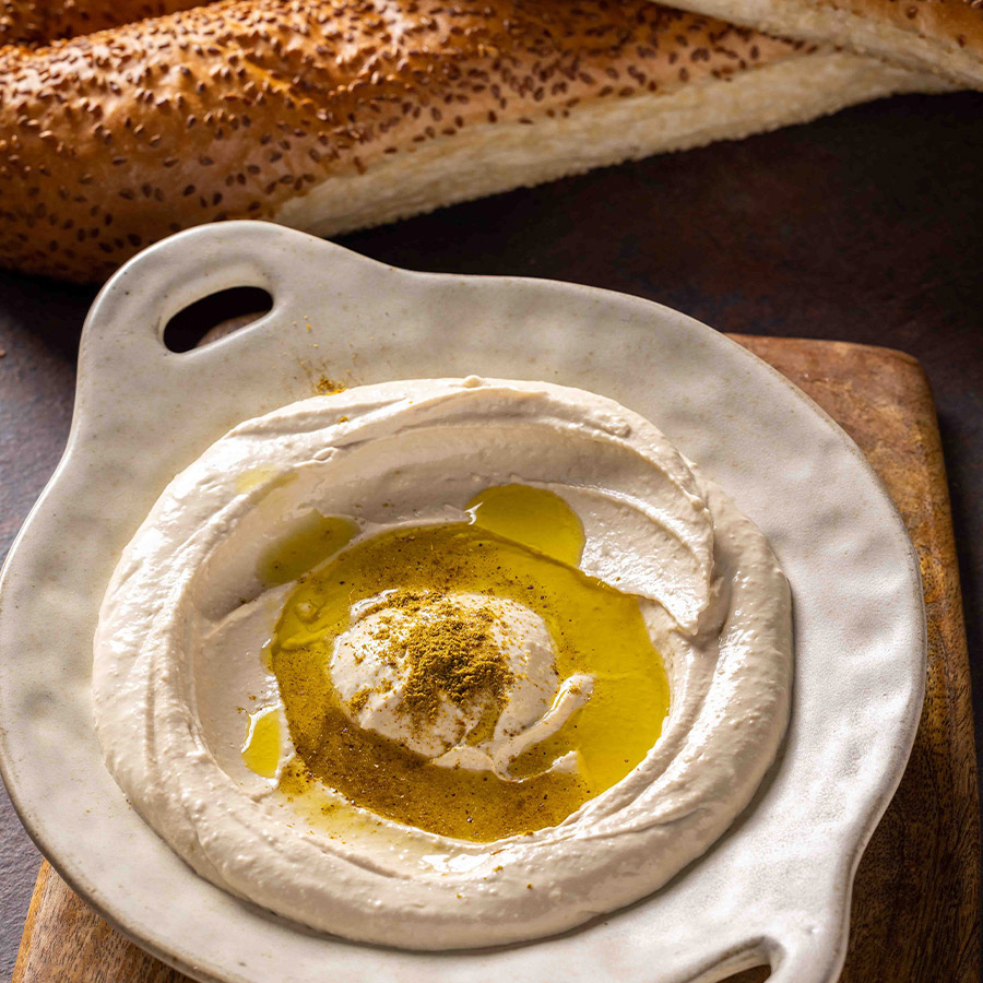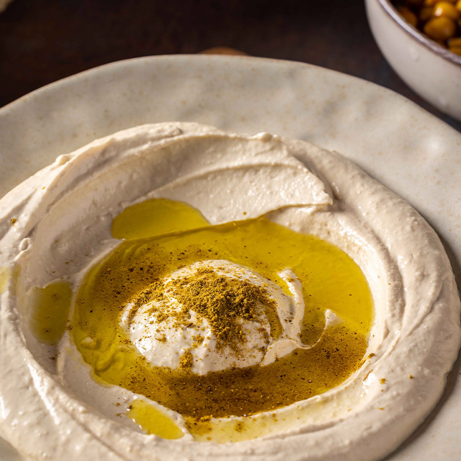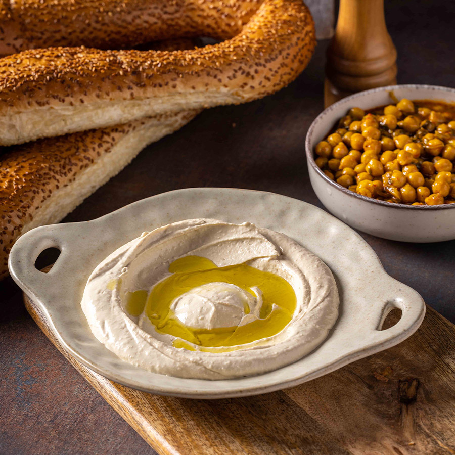 סלט חומוס רך עם אקסטרא טחינה טרייה.
