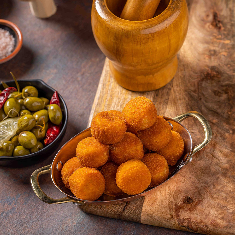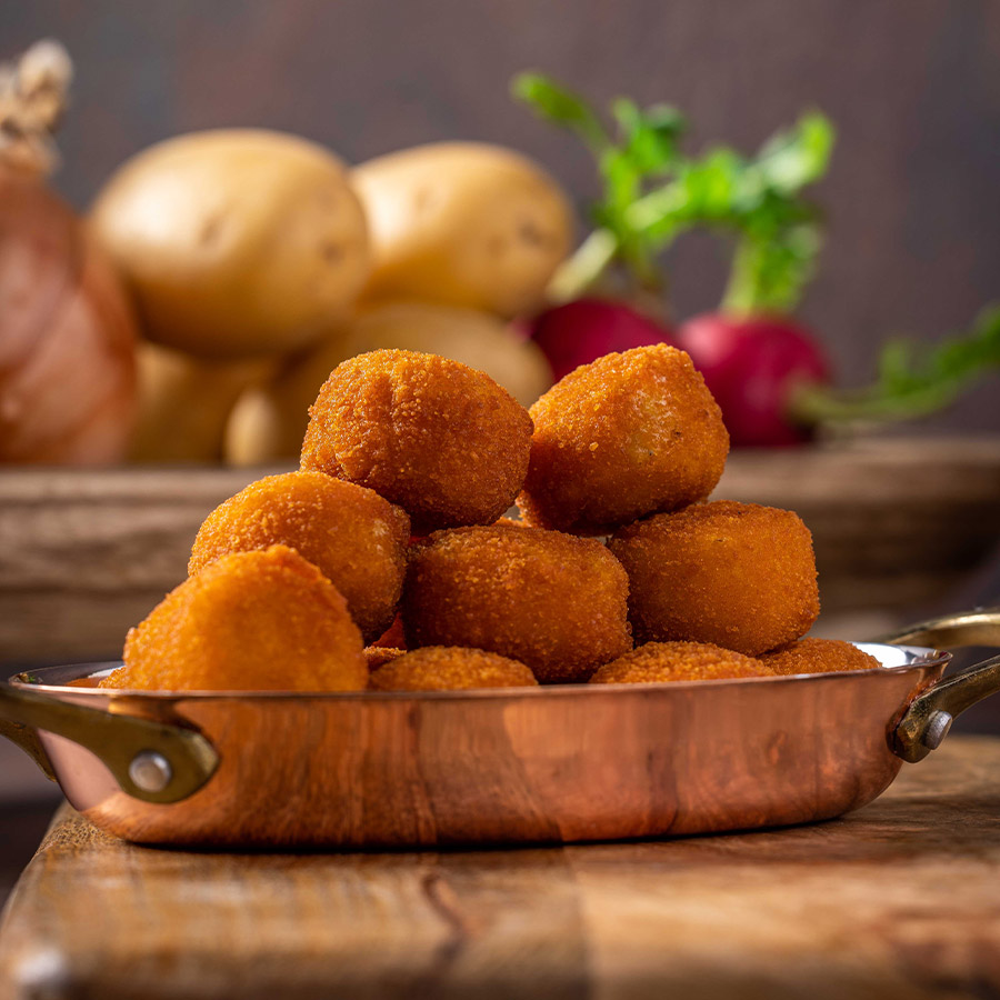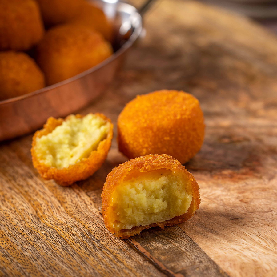 קוקט פירה מטוגן בציפוי פירורי לחם.