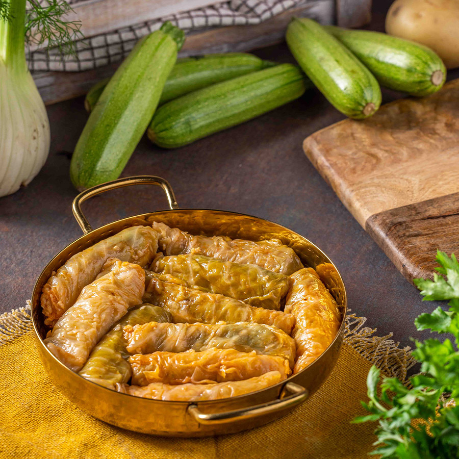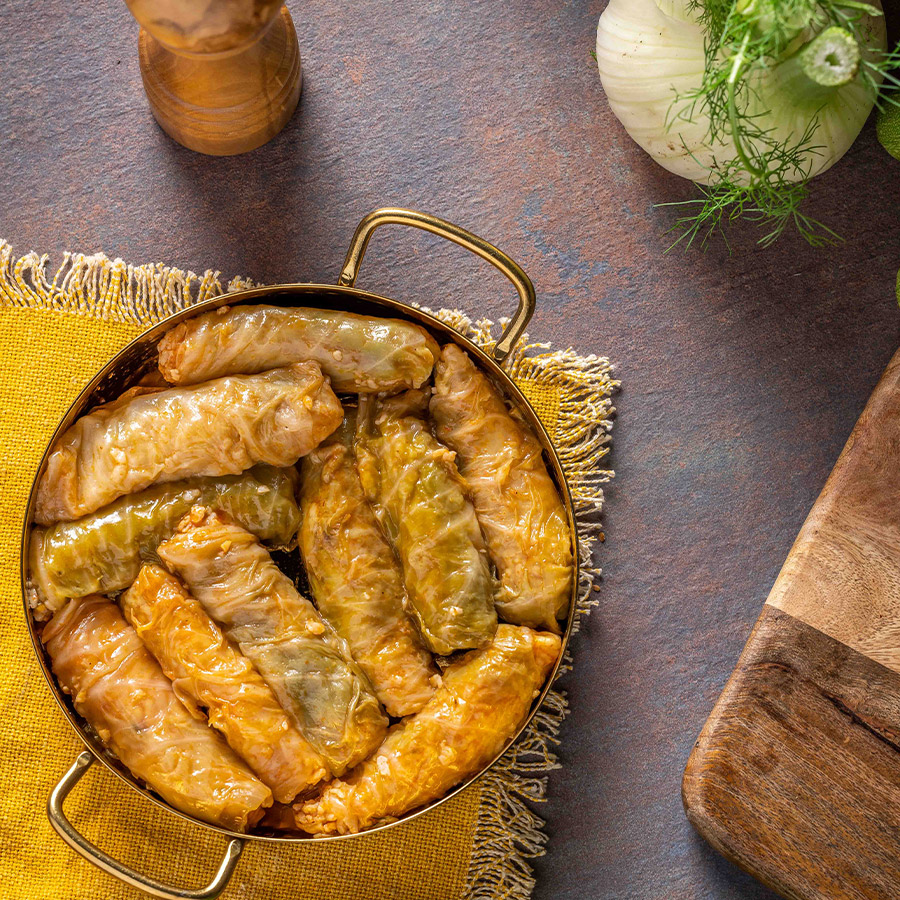 עלי כרוב טריים ממולאים באורז מתובל.