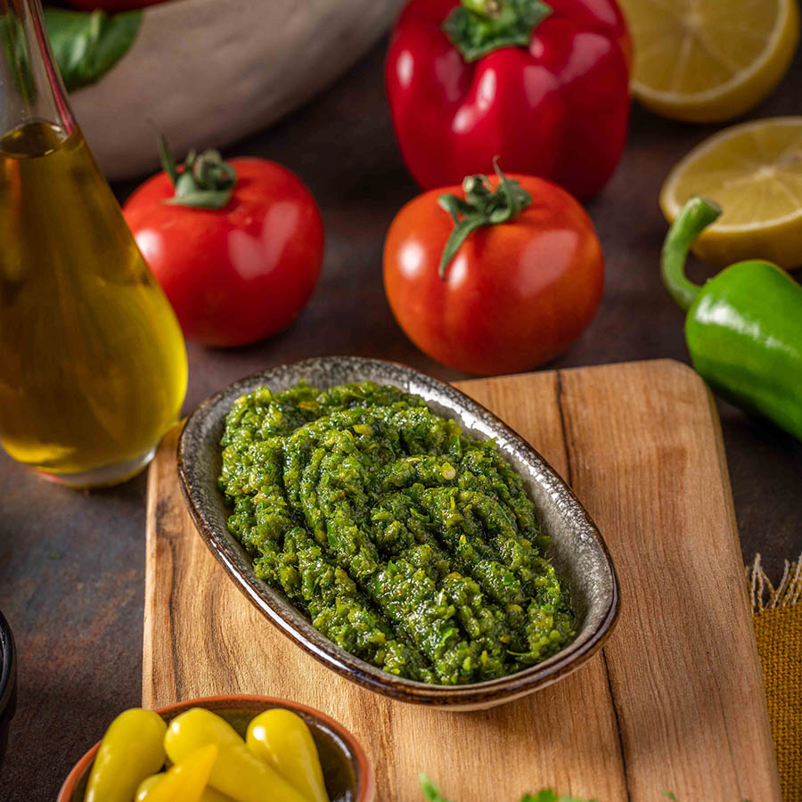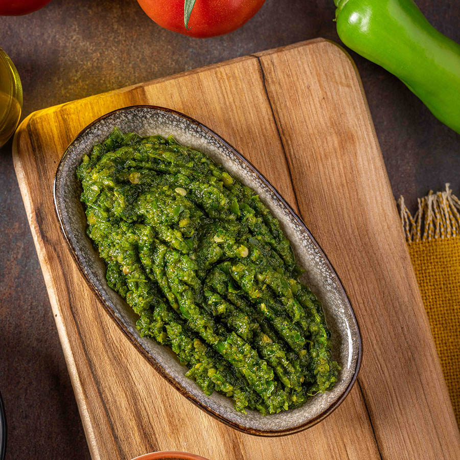 סחוג מקורי בהכנה עצמית – פלפלים ירוקים חריפים ושום.