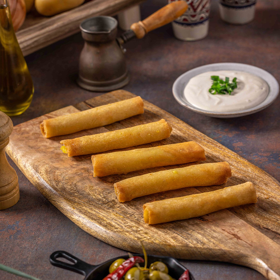 עלי פילו דקים, ממולאים 100% תפו”א מבושל ומתובל.