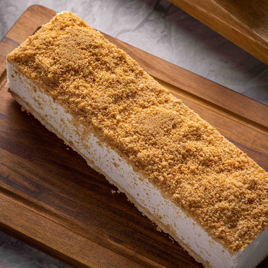 פס עוגת גבינה קרה בציפוי פירורי בצק פריך
