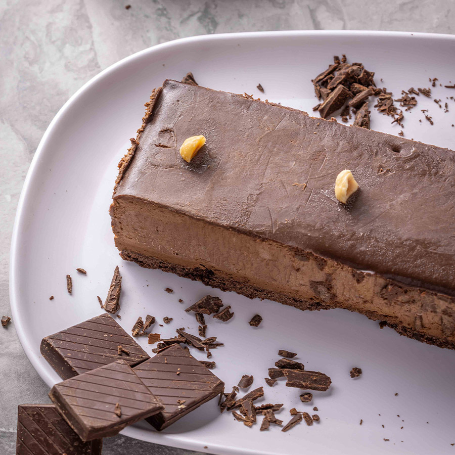 שכבות קרם שוקולד וגנאש עם טבעת שברי אגוזי לוז