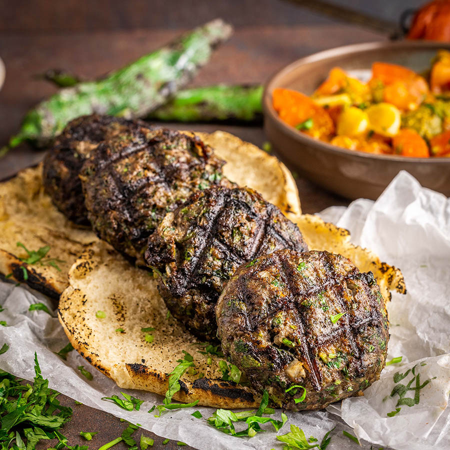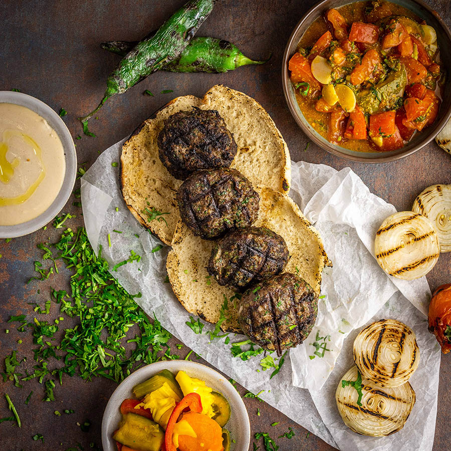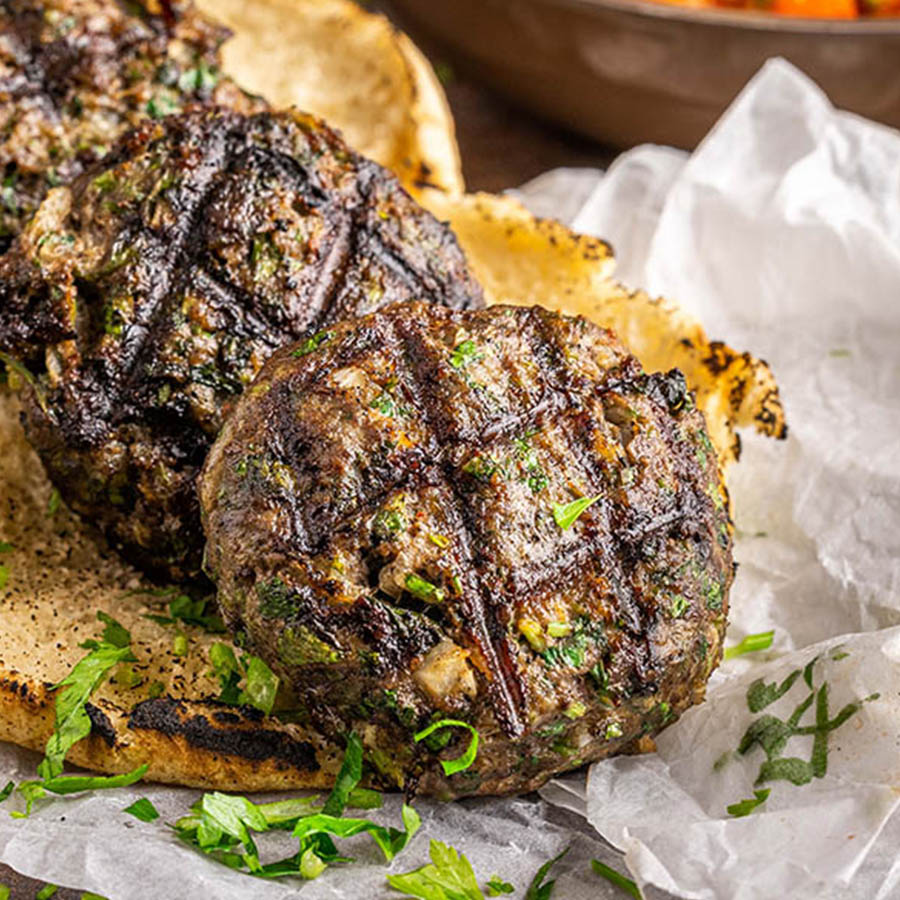 קציצת בשר עגולה ועסיסית, מתובלת בתיבול מזרחי וצלויה על הגריל.