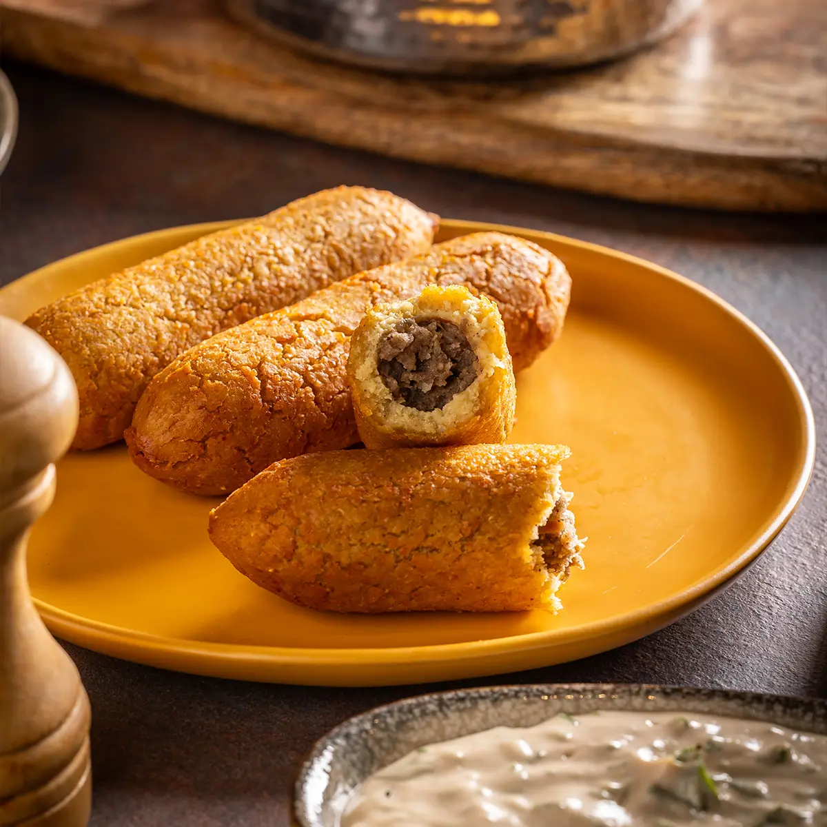 קובה סורית, במילוי בשר בקר טחון טרי, תבלינים ושקדים.