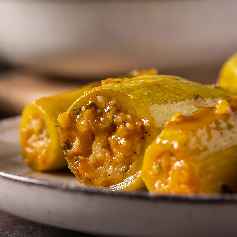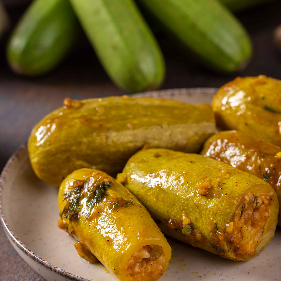 קישואים צעירים וטריים ממולאים אורז מתובל.