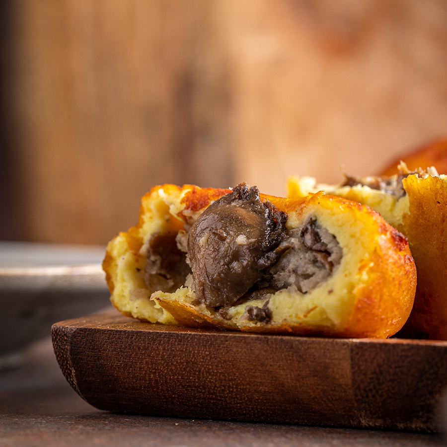 בצק רך עשוי 100% תפו”א, ממולא פטריות ובצל מטוגן.