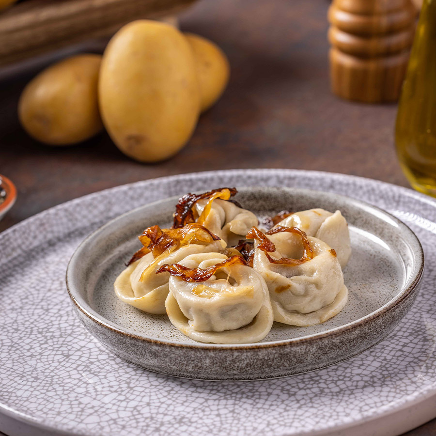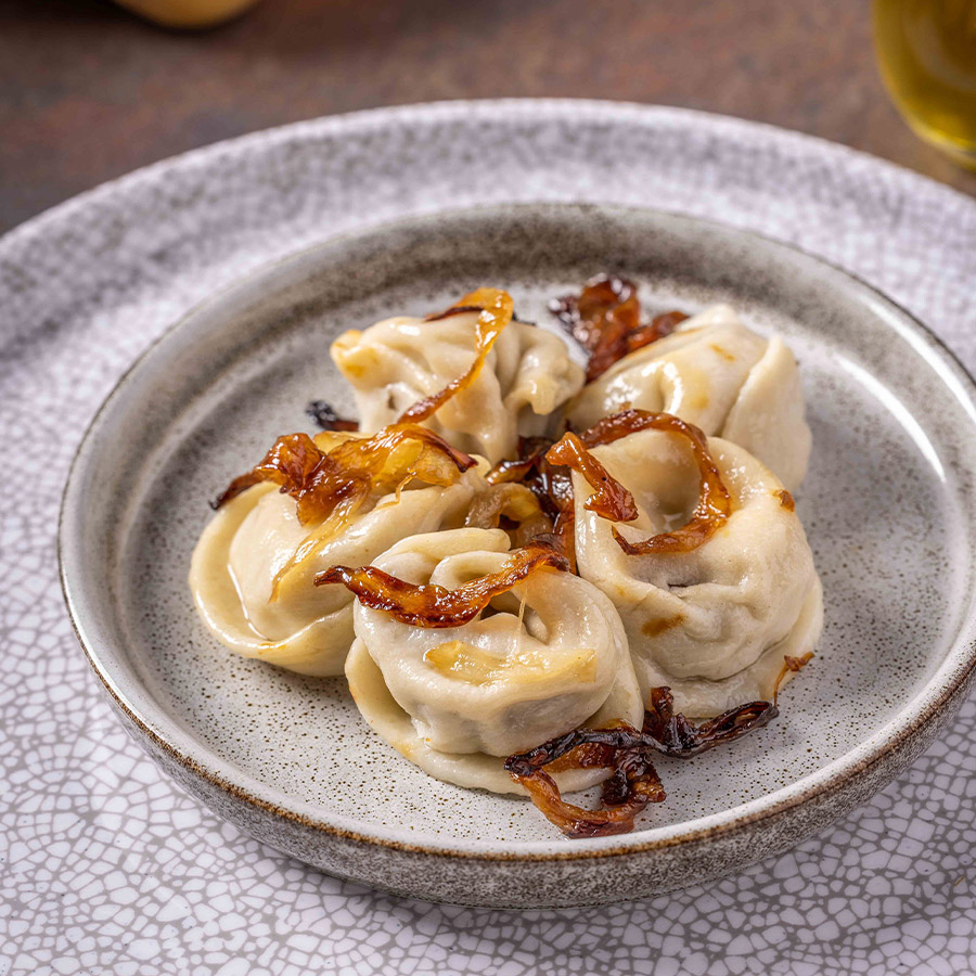 כיסוני בצק מאודים, ממולאים בשר טחון טרי ומתובל עדין. מוגשים עם בצל מטוגן.